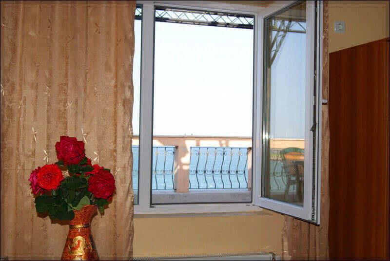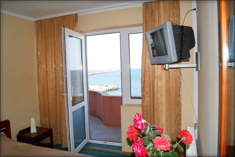 Camerele duble cu vedere la mare numerele 2, 6, și 11 sunt plasate la etajele 1, 2 și la mansarda vilei. Fiecare cameră beneficiază de baie proprie cu cabină de duș, 2 paturi de 190x90 cm, cu excepția camerei 11 care are pat dublu/martimonial, la care se adăugă TV prin cablu, frigider, șifonier, comodă cu oglindă, hol, balcon spațios (camerele 2 și 6) și terasa (camera 11) cu masă și scaune, precum și o superbă vedere la mare. Tarifele camerelor duble cu vedere la mare variază de la 170 până la 350 lei pe noapte, în funcție de perioada sezonului estival. Prețurile pot fi negociate în cazul în care se solicită mai mult de 7 nopți de cazare, sau mai multe spații de cazare într-un sejur de minim 5 nopți.